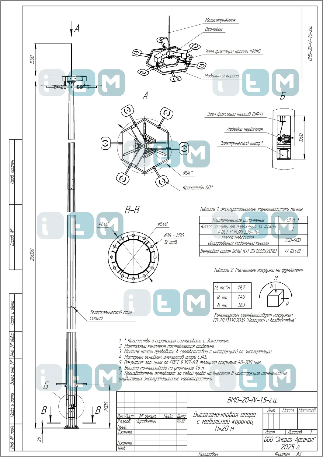 Особенности мачты ВМО-20-440/200 (МГФ-20-М)