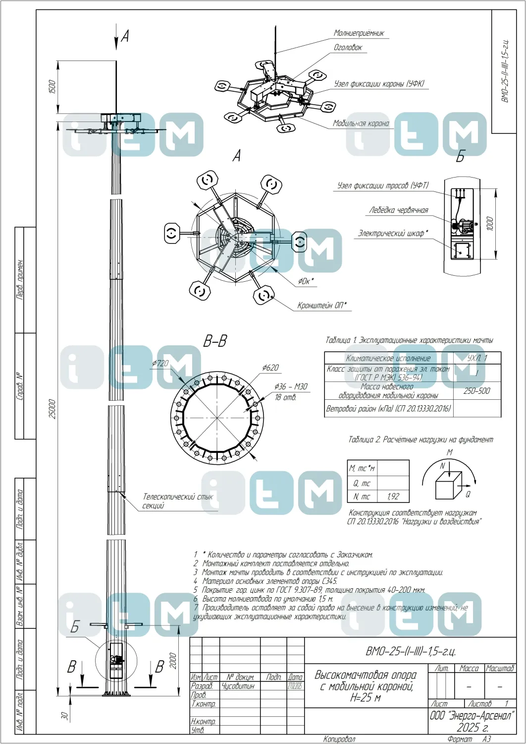 Особенности мачты ВМО-25-510/200 (МГФ-25-М)