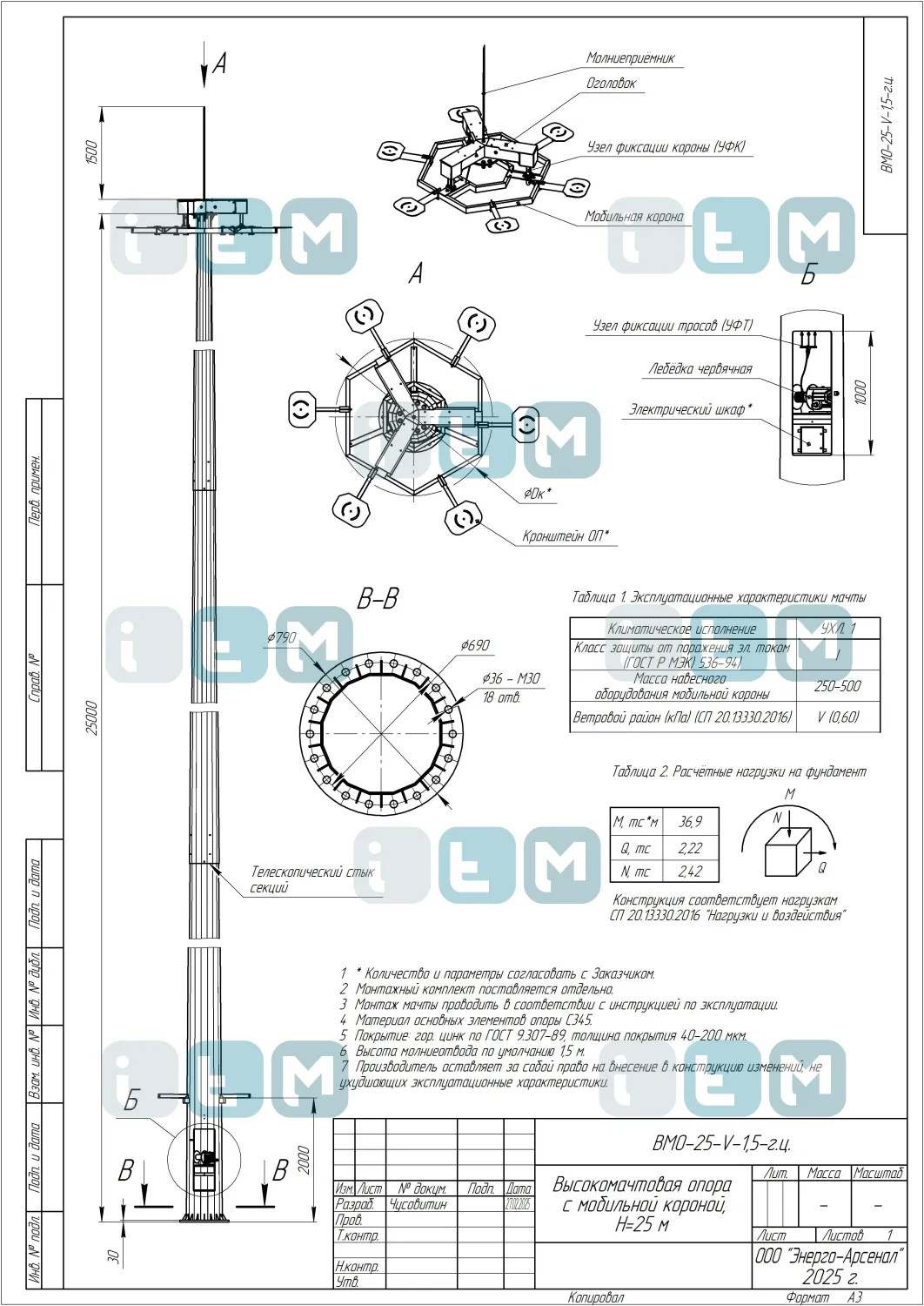 Особенности мачты ВМО-25-580/220 (МГФ-25-М)