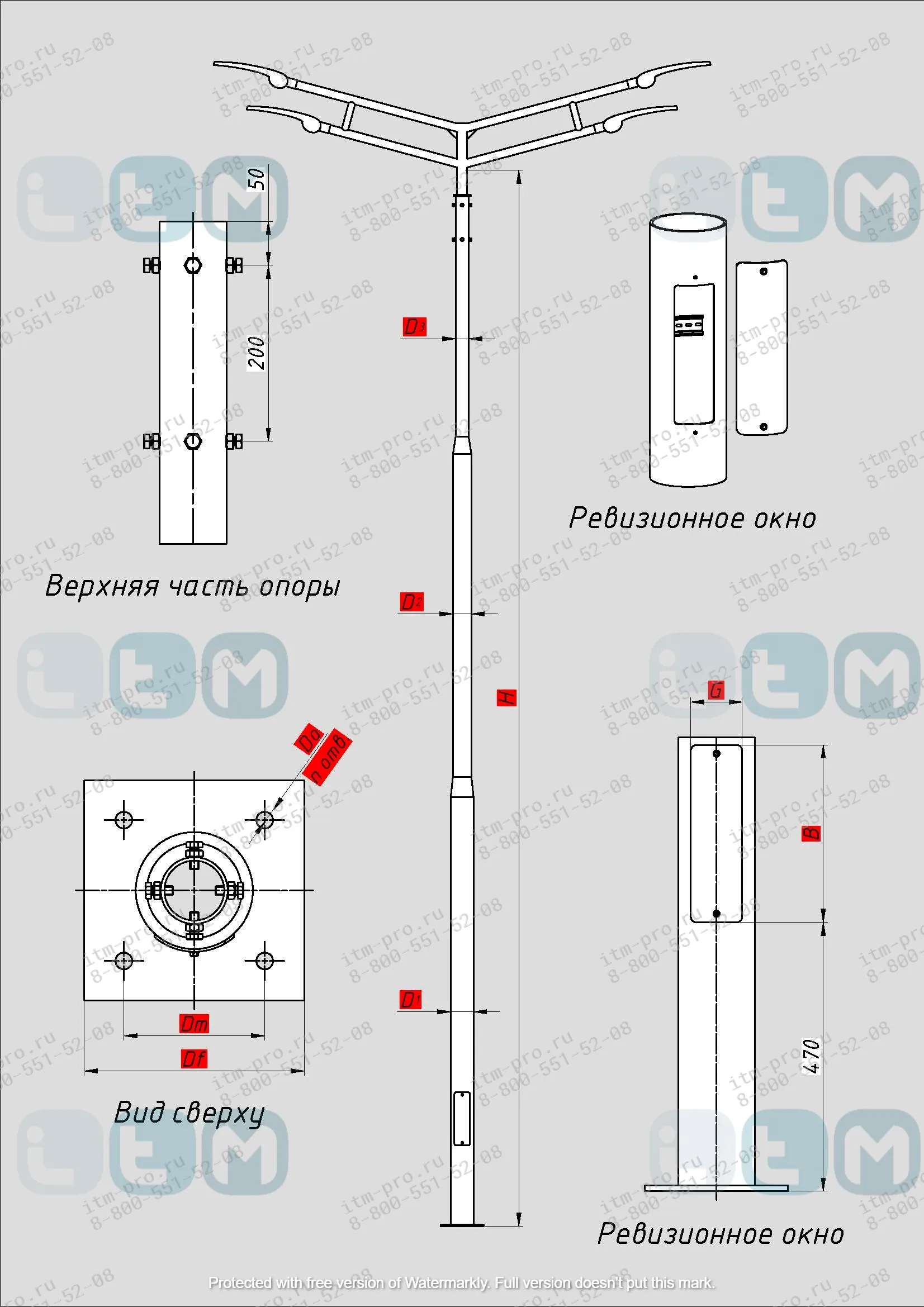 Трубчатая опора НФ – это стальной столб, для организации уличного освещения его необходимо дополнить следующими комплектующими: