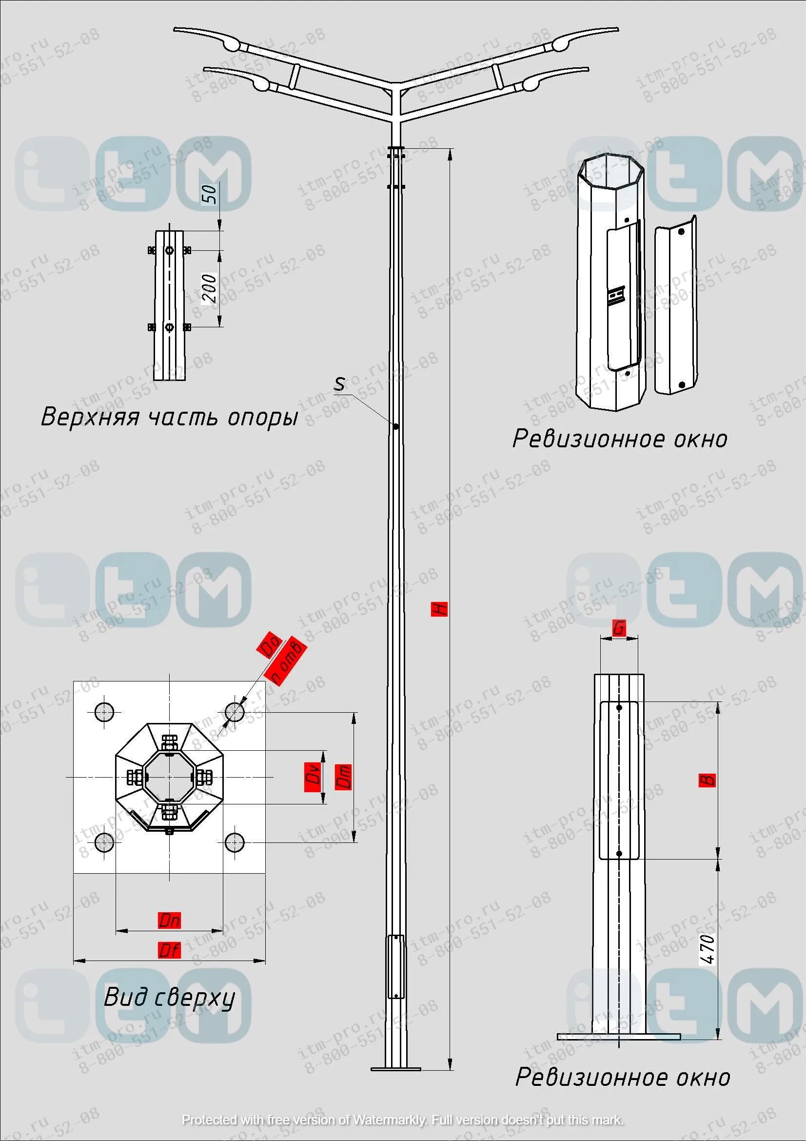Опоры освещения НФГ-7,0-05-ц необходимо дополнить комплектующими, чтобы они успешно выполняли свои функции: